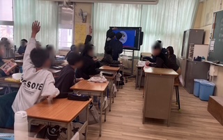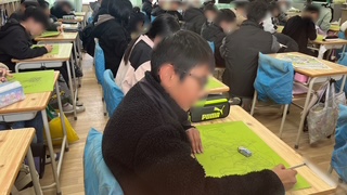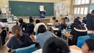 上段が1組、図工の時間で版画の制作をしていました。カラフルにデザインした動物作品のようです。中段は2組、国語の学習で説得力のある文章を書くために、反対意見を想定して文章を考えることに取り組んでいました。下段は3組、社会科クイズの続きをしていました。