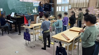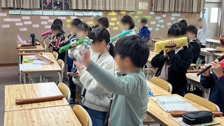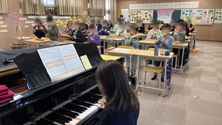 音楽の時間にこちらも6年生を送る会の学年の出し物の練習をしていました。合奏と合唱を頑張っていました。