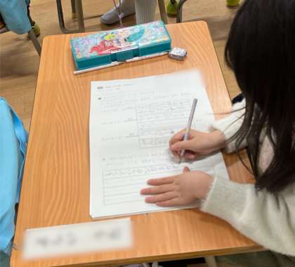 国語の学習です。ワークシートに沿って物語文を読み解いていました。「主人公に言葉がけをするなら、どんな言葉がけをする?」という発問に対し、文中、悲しい思いをしている主人公の気持ちを読み取って励ましの言葉をかけている子が多かったです。