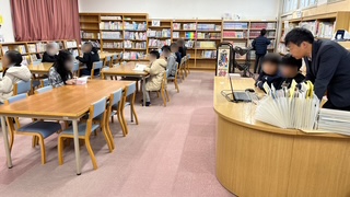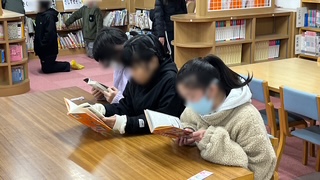 図書の時間でした。静かで落ち着いた雰囲気の中、めいめいが好きな本を手に取って読んでいました。