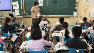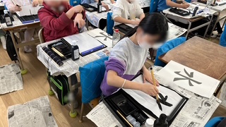 国語の書写、毛筆の練習です。「水」を書いていました。静かに姿勢良く集中していました。