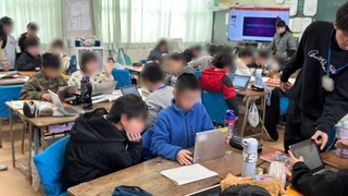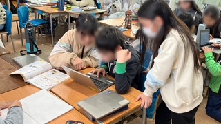 理科の学習です。今まで学習したことの復習を兼ねて班対抗のクイズ大会をするそうです。学習したことの中から問題を考えます。どんな問題にしようか教科書やタブレット端末などを見ながら話し合っていました。
