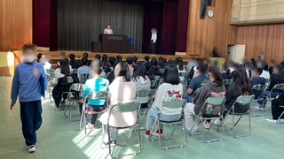 卒業式の練習が進んでいます。入場や証書授与など細かい所作を確かめながら頑張っていました。