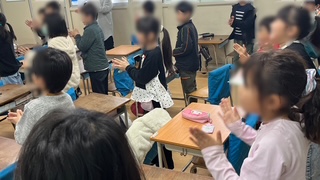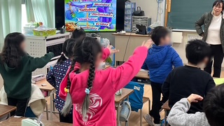 英語活動の時間でした。C-NETの先生と一緒にリズムあそびをしながら曜日の英単語を学習していました。とても楽しそうでした。