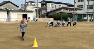 学活の時間にキックベース型ゲーム大会をしていました。体育で学習したゲームなので、みんなとても楽しく活動できました。