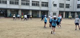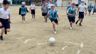 体育の学習で、サッカーのゲームをしていました。とても白熱したゲームでした。