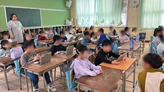 2年生の様子です。それぞれの学級で整頓をしたり、先生の話を聞いたりしていました。上段が1組、中段が2組、下段が3組です。