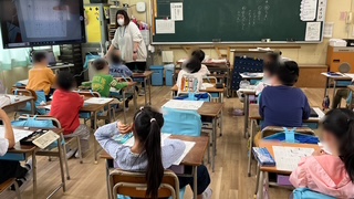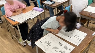 国語の学習で、ひらがなやカタカナの復習プリントに取り組んでいました。止め、はね、払いなどを丁寧に書けるように復習していました。