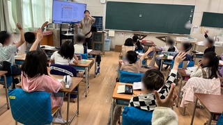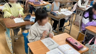 算数の学習で、2年生の学習内容の振り返りプリントに取り組んでいました。みんなで答え合わせをする中で既習事項の確認をしていました。