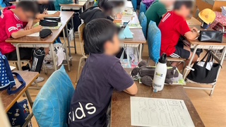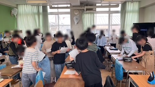 上段は1組、キャリアパスポートの自己紹介カードを書いていました。キャリアパスポートとは、学校生活や学習を記録し、将来の進路を考える一助とする資料です。中段は2組、クラスでジャンケンゲームをする活動をしていました。クラス全員と関わる機会をもつ仲間づくりの一環です。下段は3組、理科の学習です。6年生になって始めての理科の時間なので専科の先生と子どもたちの自己紹介のしあいになっていました。