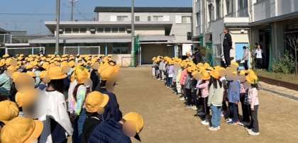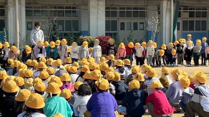 今日は全校朝会の時間に児童会主催で1年生を迎える会をしました。1年生全員と2〜6年生全員とが対面する最初の会です。1年生のみんなは少し緊張した面持ちでしたが、元気に「よろしくお願いします」と先輩たちにあいさつできました。2〜6年生たちも温かい表情で迎えていました。