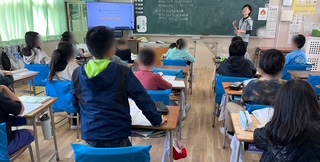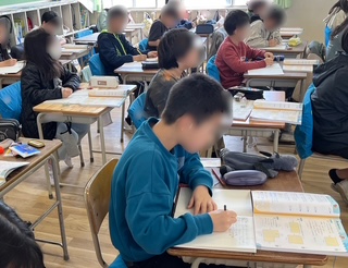 5年生の様子です。算数で小数の学習でした。教科書にある練習問題に取り組み、みんなで答え合わせをしていました。