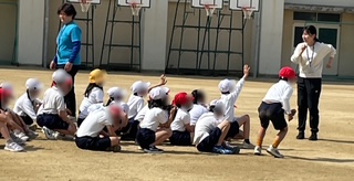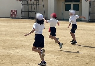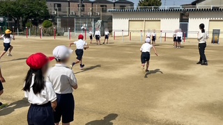 体育の学習です。速く走るにはどう動いたらいいかを考えていました。腕の振りや足の蹴りなどを考えたりスキップをしてリズムを試したり、いろいろ工夫していました。