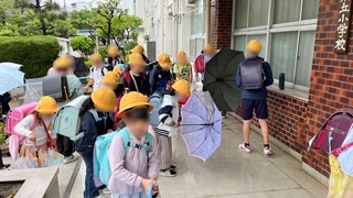 4月23日(水)です。あいにくの雨模様の登校ですが、子どもたちは元気に登校してきました。雨の日は、正門エントランスが混雑します。