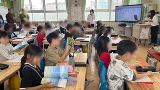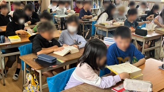 4年生の参観授業は、国語で漢字辞典の使い方でした。上段が1組、中段が2組、下段が3組の様子です。