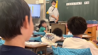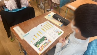 算数の学習です。1〜10の数について学んでいました。1〜10の数の中で一つを隠して、そこに入る数を考える問題に挑戦していました。