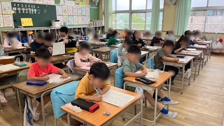 算数のテストに取り組んでいました足し算の筆算の単元です。しっかり頑張って!