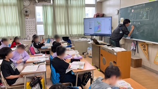 社会科の学習で、大阪府の土地の使い方について考えていました。教科書の資料をもとにプリントにまとめていました。