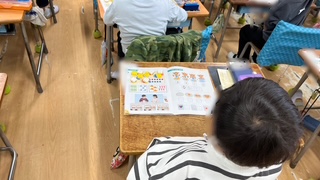 算数の学習です。二つの数を比べる方法を考えていました。「二つとも数える」や「印をつけて比べる」などいろいろな意見が出ていました。
