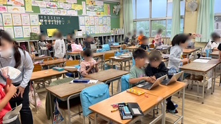 今日は雨天で運動場は使えないので、各教室で工夫して過ごしていました。