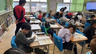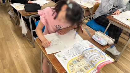 家庭科の学習です。「毎日の生活を見つめてみよう」の単元で、自分たちの生活を振り返っていました。家庭での一日を振り返ってプリントにまとめていました。