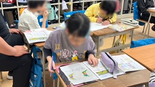 社会科の学習で、大阪府の土地の使い方について考えていました。教科書の資料をもとにプリントにまとめていました。