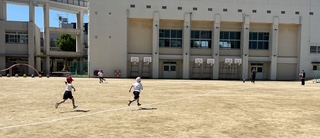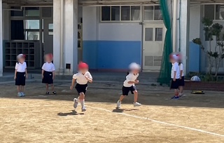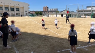 体力テストの練習を兼ねて50m走を走りました。1年生にとっては長い距離ですが、友だちの応援を受けながら一所懸命頑張っていました。