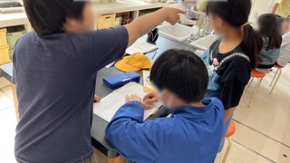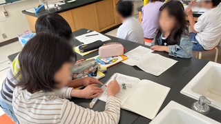 理科の学習です。気温の変化を観察しグラフ化して考察していきます。班で数値の確認をしあいながら記録し、考察の材料にします。