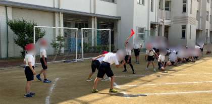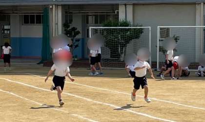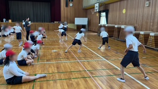 体育の学習です。体力テストの記録をとっていました。今回は、運動場で50m走と体育館で反復横跳びです。友だちの声援を受けながら頑張っていました。