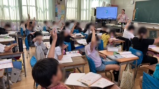 上段は1組、算数で時刻と時間の学習のおさらいをしていました。