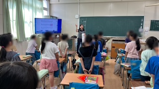 中段は2組、音楽の学習でモニターを見ながら曲を階名で斉唱していました。