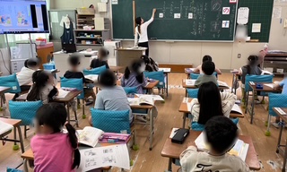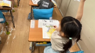 国語の学習です。物語の読み取りをしていました。場面の絵が載っているワークシートを活用しながら読み取りを進めていました。