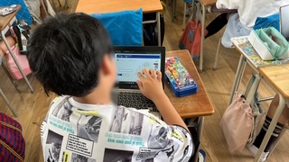 算数の学習です。タブレット端末のアプリを活用して練習問題に取り組んでいました。タブレット端末の画面を指でなぞって文字や数字などを書いて計算しているので、教室が紙面にカリカリ書く鉛筆の音もしない静かな集中した空間になっていました。