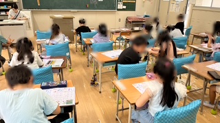 3学級ともひらがなノートでのひらがな練習をしていました。上から1組、2組、3組の様子です。