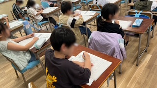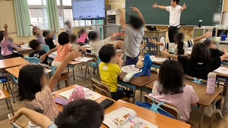 上段が1組、音楽の学習で校歌を斉唱していました。