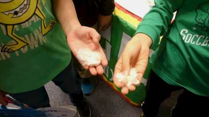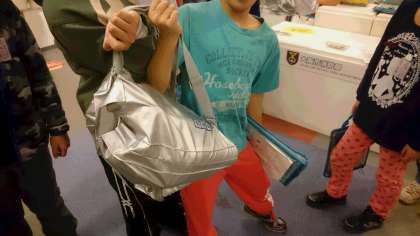 3枚目の写真は、エコな服です。服の中身に水をかけると温かくなるそうです。