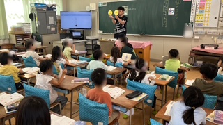 国語で言葉と言葉をつなぐ文字について学習していました。今日は、「りんごはあかい」の「りんご」と「あかい」をつなぐ「は」についてでした。文字は「は」なのに読み方は「わ」になるのも1年生にとっては難しいです。