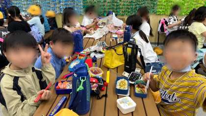 休憩所の割り当て時間の関係で、着いて早々ですがお弁当タイムです。美味しそうなお弁当に、皆、とても嬉しそうです。