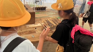 クラゲ館を見学しています。いろいろな楽器や音のなる展示がありました。