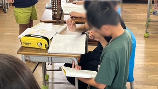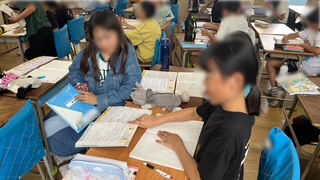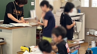 算数の学習です。小数の掛け算のまとめと振り返りで、教科書の問題や算数ノートなどに取り組んでいました。互いに教え合ったり、先生に確認してもらったりしながら頑張っていました。