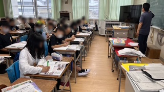 上段の1組は国語で物語文「風きるつばさ」の第二段落の読み取り、中段の2組は理科で人体のつくりとはたらきのまとめ、下段の3組は社会科で災害に対応する行政の取り組みについて、それぞれ学習していました。