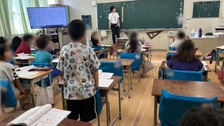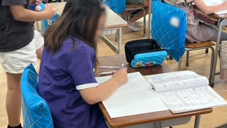 算数の3桁の足し算の筆算の学習をしていました。計算の中で繰り上がりが2回ある足し算の筆算に取り組んでいました。