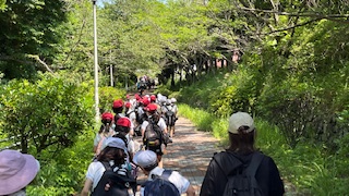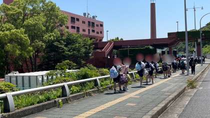 5年生一行は、淡輪の大阪府青少年海洋センターに到着しました。道中の電車の中のマナーはとてもよく、子どもたちの頑張っていこうという意志を感じました。