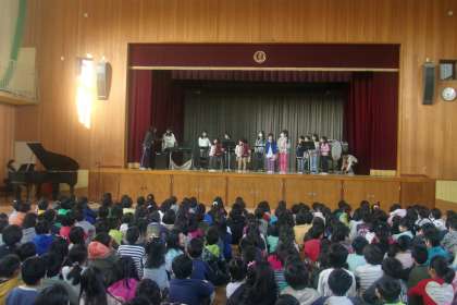 今日のフレンド集会は、クラブの舞台発表会でミュージッククラブとバスケットボールクラブの発表でした。