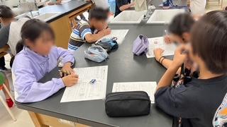 理科の学習で、植物の発芽と成長の単元のまとめをしていました。まとめプリントに取り組み、できたら自分で丸つけをしたあと、先生の解説を聞きます。