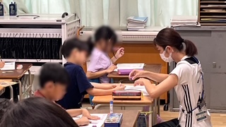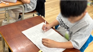 3桁の足し算の練習問題プリントに取り組んでいました。筆算で解いていく方法を正確に早くできるよう頑張っていました。