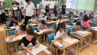 5時限目は、学習参観でした。雨天にもかかわ関わらずたくさんの保護者に来校いただき子どもたちの様子を参観いただきました。1年生は、学習しているところを参観してもらうのは初めてでした。1・2・3組とも国語のプリント学習でした。どの子も少し緊張気味でしたが、頑張っていました。