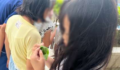 3年生は理科で昆虫について学習しています。休み時間に校内でアゲハチョウの卵を見つけました。これから教室で育てていくそうです。
