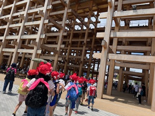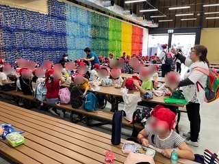 大阪メトロが大混雑で、やっと入場できました。先にお弁当タイムにしました。
