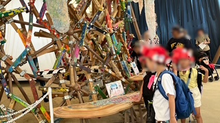 クラゲ館も見学しました。音の出る展示や楽器などを触ってみました。